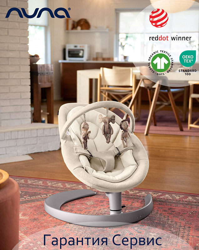 Вдохновлённое беззаботным покачиванием листа на лёгком ветерке, кресло-шезлонг LEAF Grow оснащено уникальным механизмом безмоторного качания. Малыш может расслабиться в естественной успокаивающей атмосфере или понаблюдать за дружелюбными подвесными игрушками, а вы сможете насладиться временем, пока ваш чай ещё тёплый.