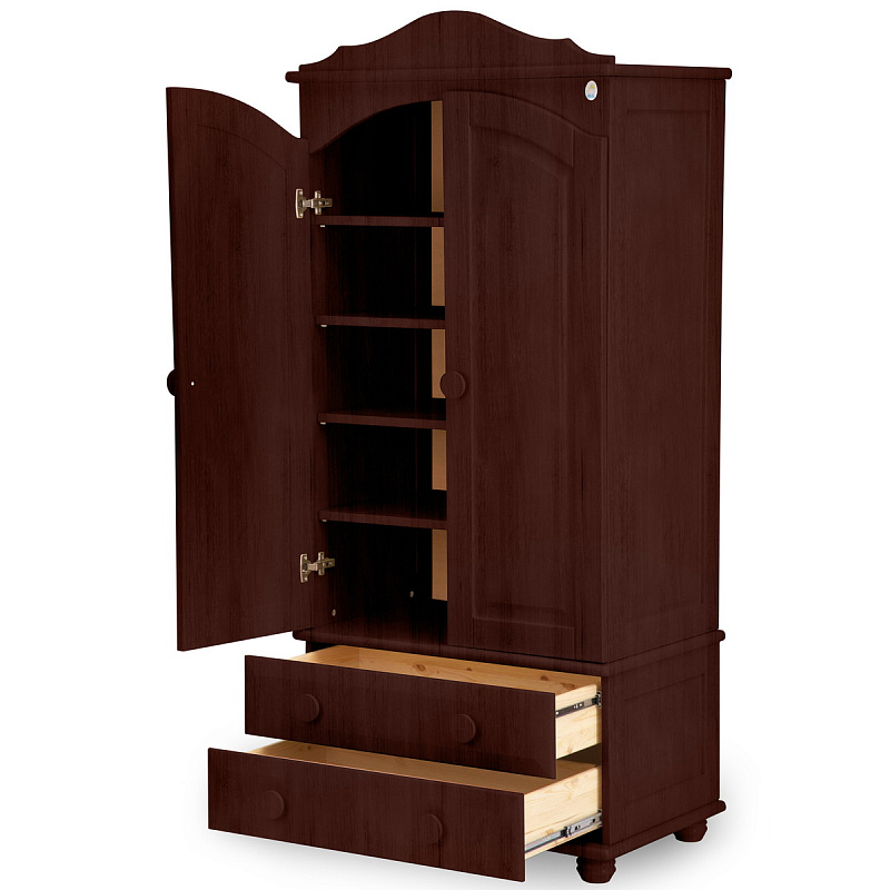Имеет пять полок для белья, штанга для одежды и два вместительных ящика комодной системы