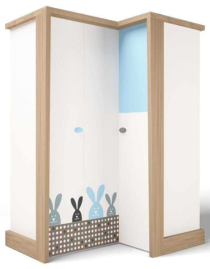 Детский шкаф угловой, гармошка ABC-King MIX Bunny правый голубой