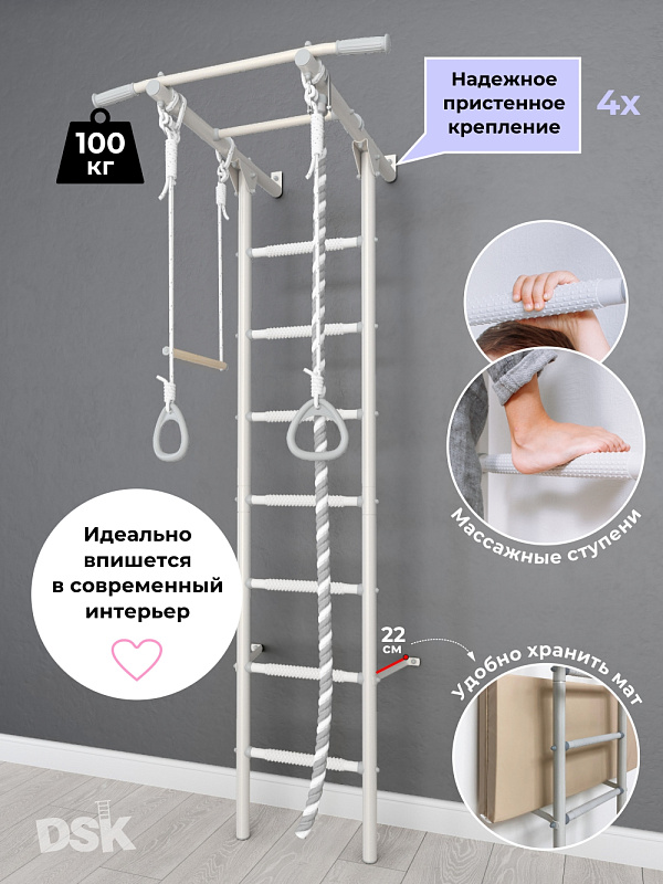 Детский спортивный комплекс DSK 1.0 — идеальное решение для активного развития вашего ребёнка! Этот комплекс изготовлен из высококачественных материалов и соответствует всем стандартам безопасности.