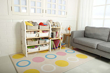 Средний по размеру стеллаж для игрушек DesignToy-4 значительно облегчит маме и ребёнку размещение книг и любимых игрушек. Модель выполнена из гипоаллергенного пластика PE/ABS, который легко очищается простыми моющими средствами.