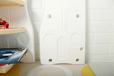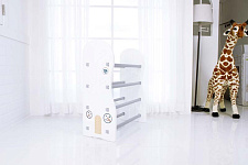Приятные светлые оттенки стеллажа помогут ему легко вписаться в интерьер детской. На трех полках ребенок легко разместит книги и альбомы. Открытые ящики компактно примут игрушки и вещи малыша. В установленном виде стеллаж занимает 115x36x91 см.