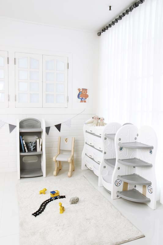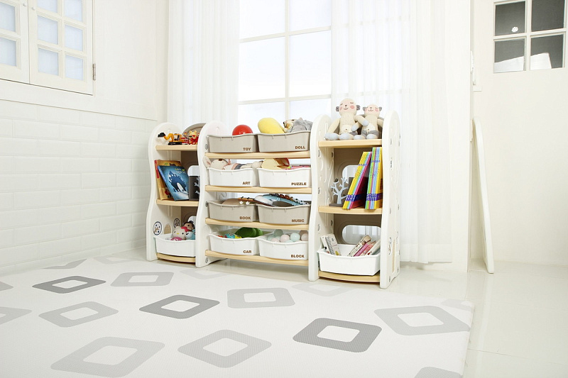 Стеллаж для игрушек DesignToy-6 – это отличный выбор для любой детской комнаты. Он изготовлен из лёгкого безопасного пластика, в Южной Корее. Благодаря свойствам этого материала стеллаж лёгок, прочен, негигроскопичен и прост в очищении. Симпатичные рисунки на поверхности пластика очень привлекательны для детей. У стеллажа предусмотрено 4 уровня пластиковых направляющих, на которых располагаются 8 ящиков. Дополнительный ящик лежит на одной из книжных полок. В них ребенку будет удобно сложить свои вещи и игрушки, а на полки расставить книги, фотографии и альбомы. Стеллаж имеет размер 153x36x91 см.