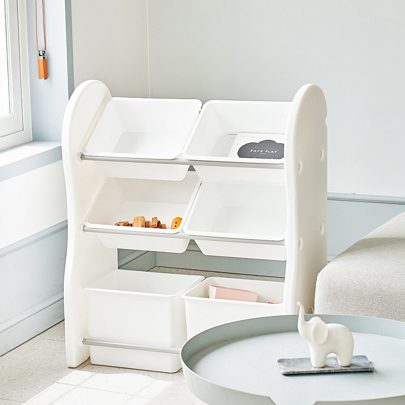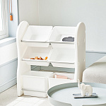 Высота стеллажа и размер отсеков разработаны с учетом детской физиологии: ребенку удобно доставать и складывать все свои сокровища самостоятельно. В начале малыш сам будет выбирать, с чем играть, а в конце с удовольствием принимать участие в уборке.