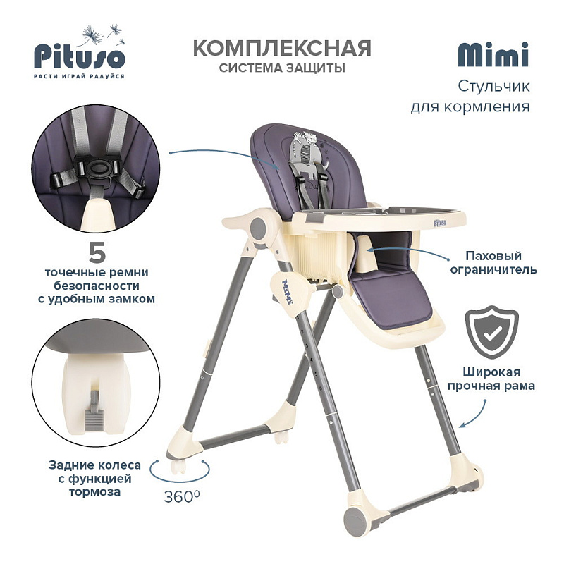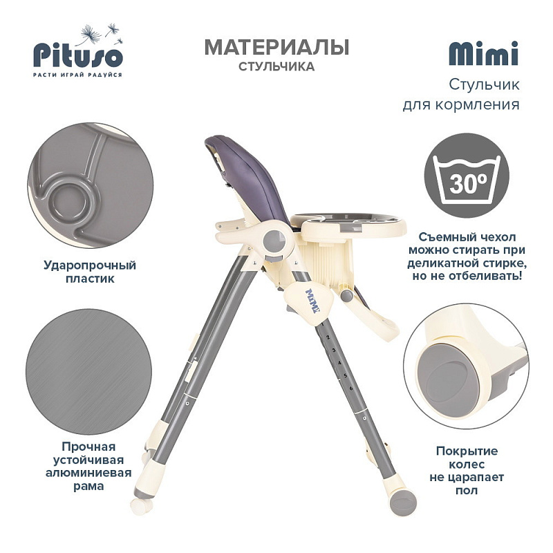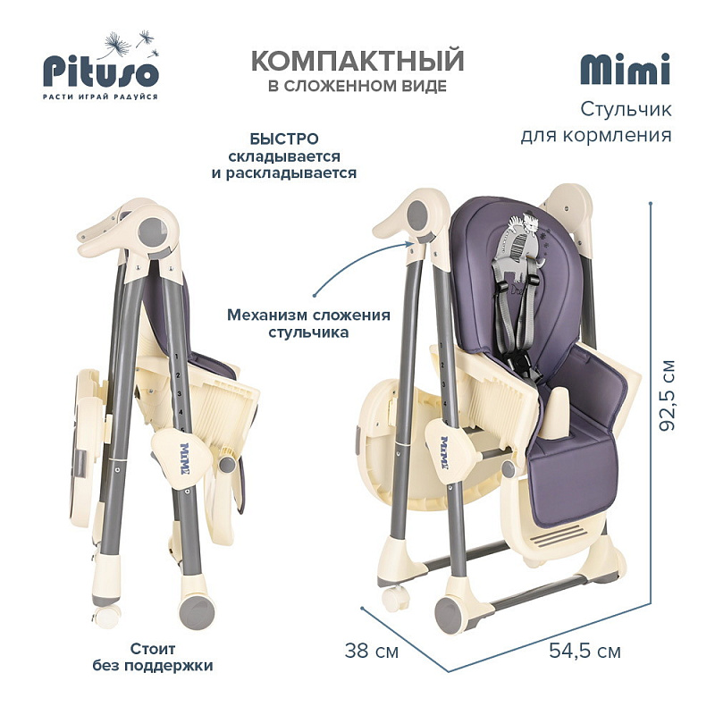 Детский стул для кормления Pituso Mimi GREY/Серый