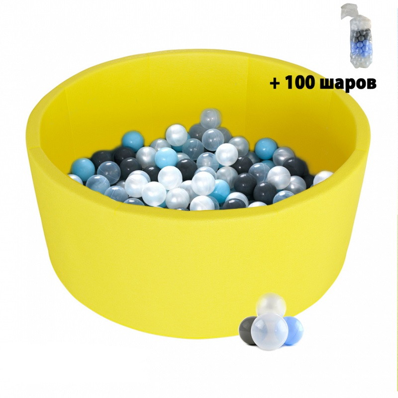 Детский сухой бассейн Kampfer Pretty Bubble 100 шаров Желтый (голубой/серый/жемчужный/прозрачный)