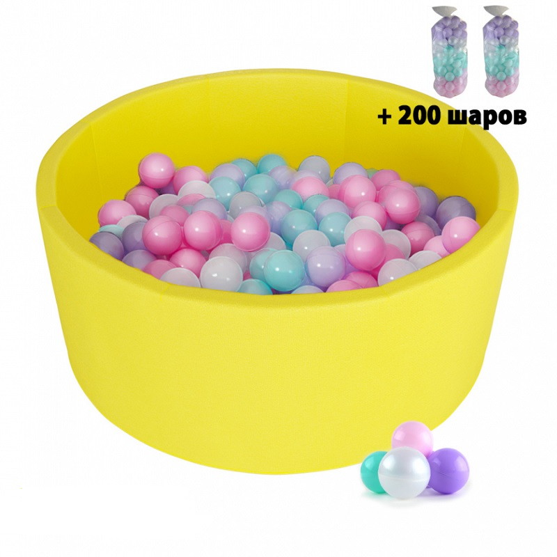 Детский сухой бассейн Kampfer Pretty Bubble 200 шаров Желтый (розовый/мятный/жемчужный/сиреневый)