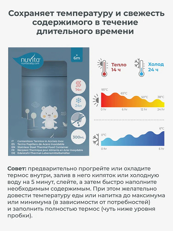 - Держит тепло до 14 часов и холод до 24 часов
