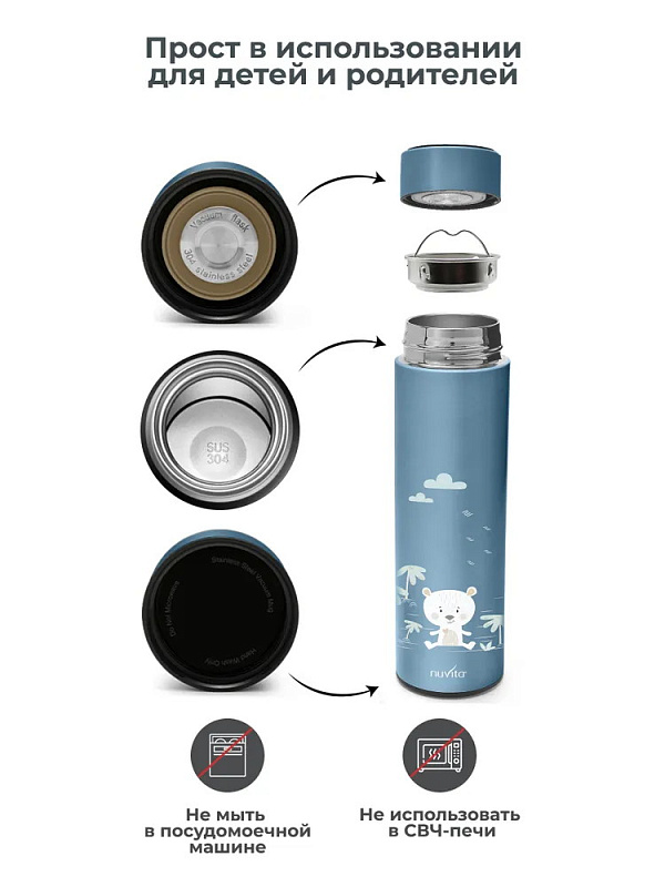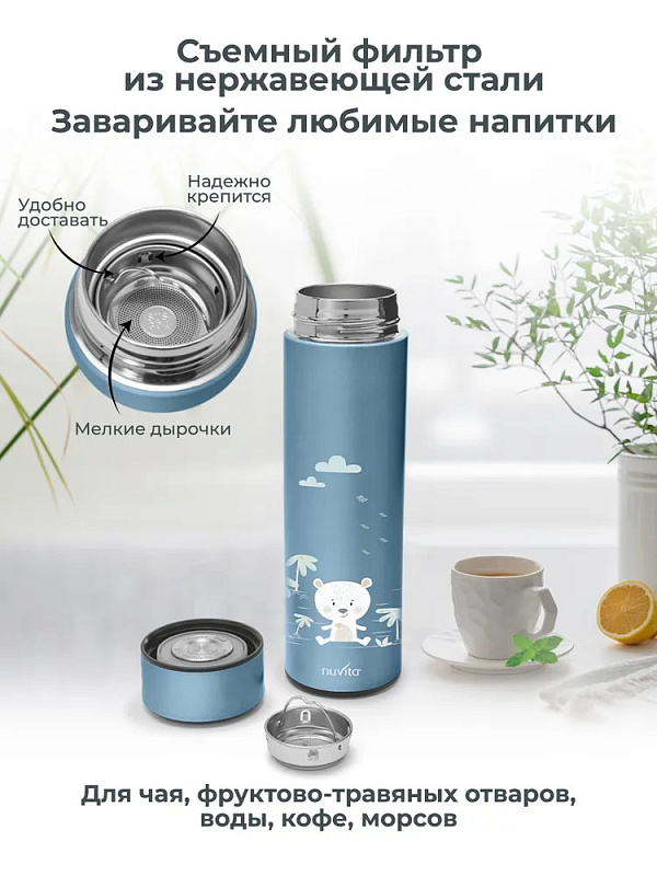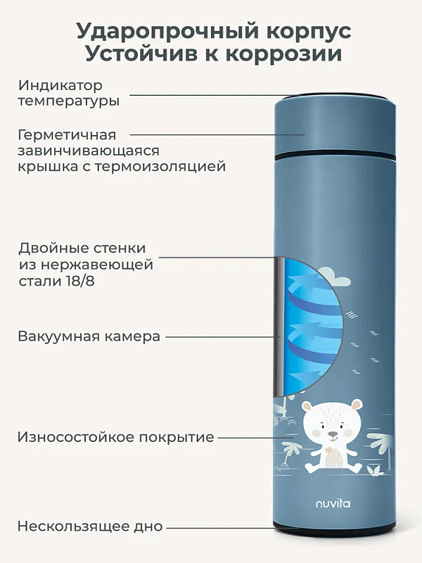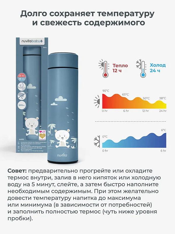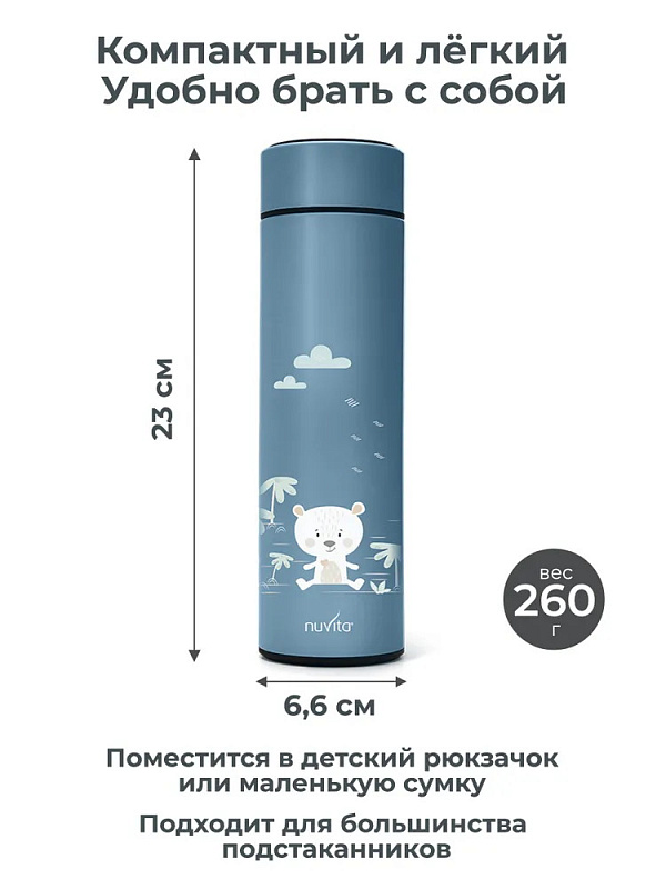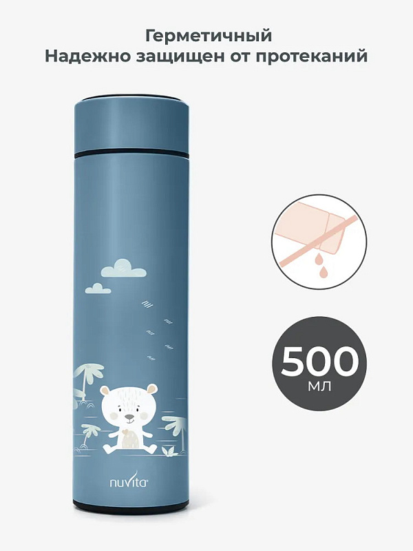 Детский термос Nuvita с индикацией температуры 4455, 500 мл голубой