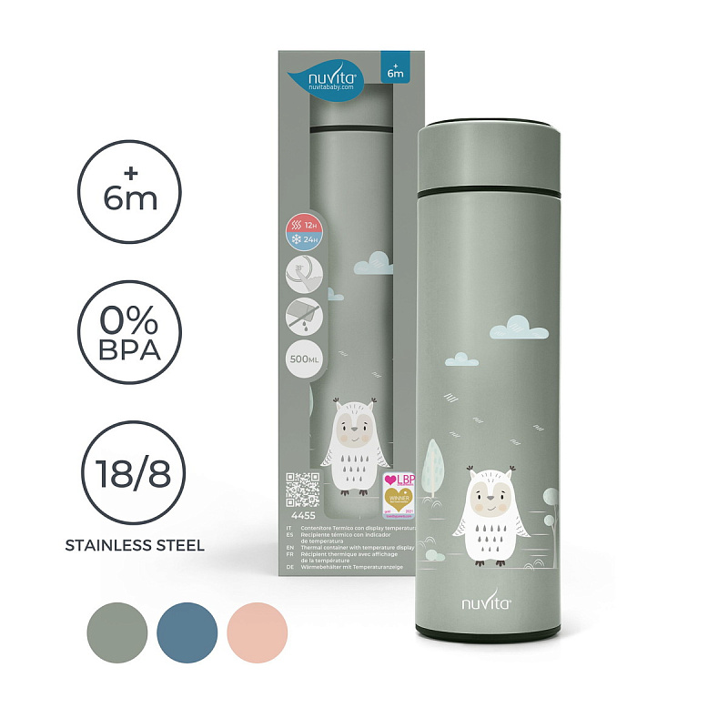 Детский термос Nuvita с индикацией температуры 4455, 500 мл серый