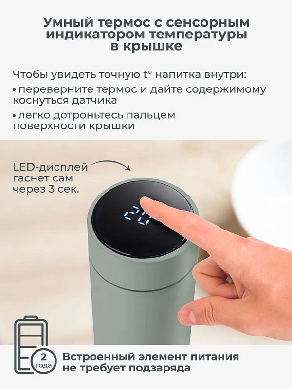 - Встроенный цифровой термометр в крышке термоса