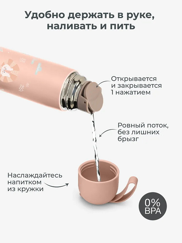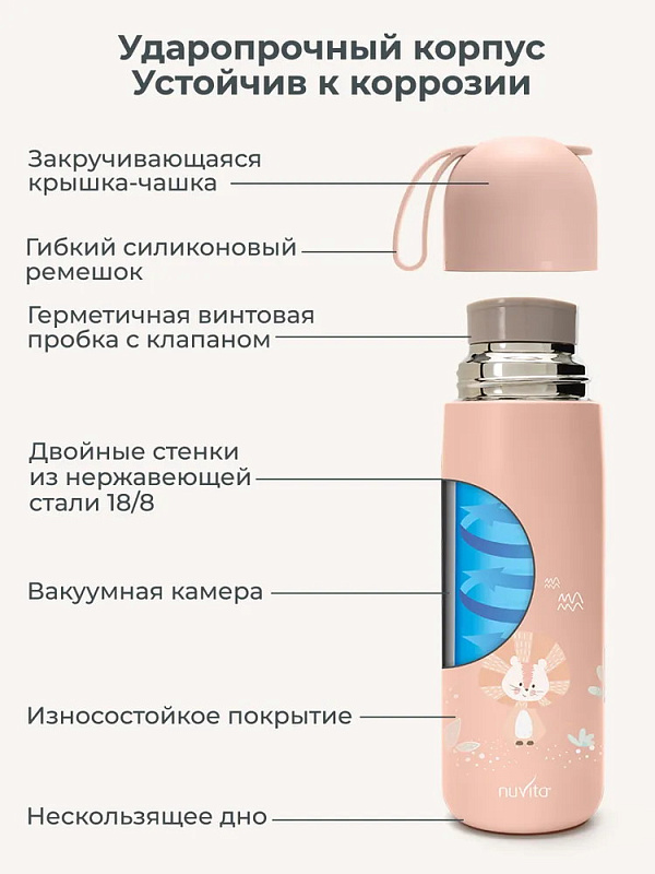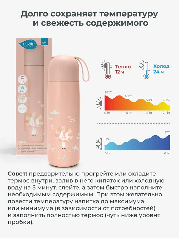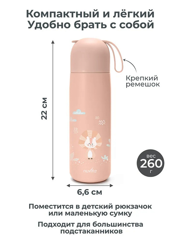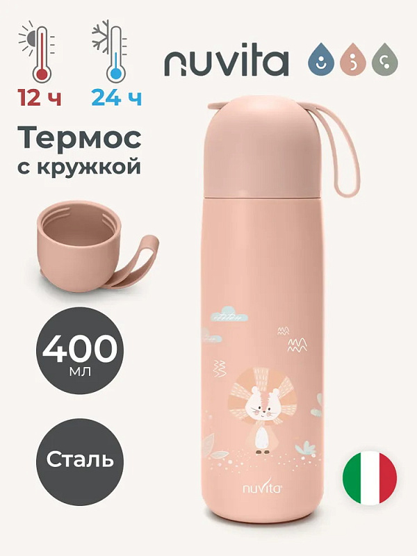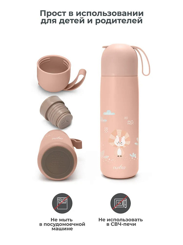 Детский термос Nuvita с силиконовой ручкой 4435, 400 мл розовый
