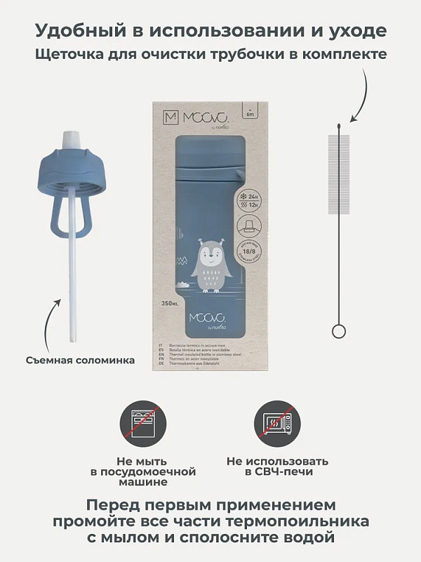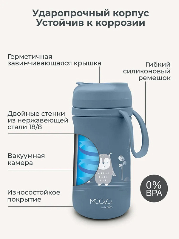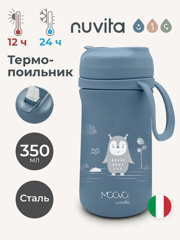 Детский термос Nuvita с трубочкой и мягким носиком 4440, 350 мл синий