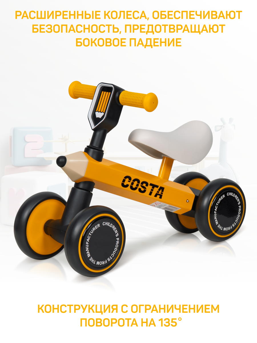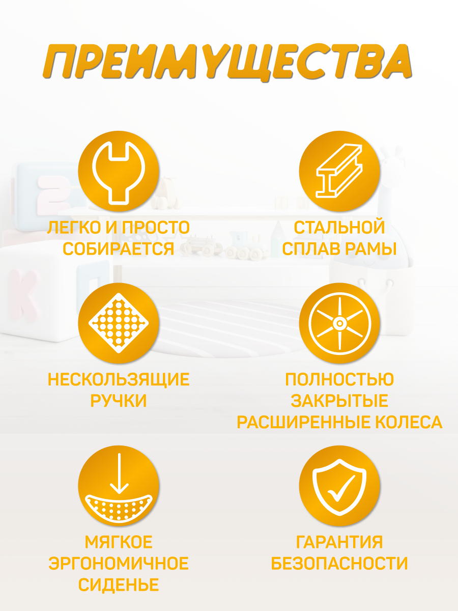 Полностью закрытые широкие колеса уберегут малыша от падения даже при резких поворотах.