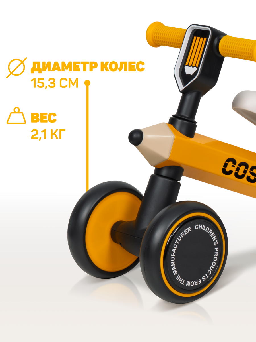 Толокар-беговел привлечет внимание ярким цветом и необычным дизайном в виде карандашика. Легкий и шустрый беговел – отличный подарок на любой праздник для ребенка! Подходит для детей от 1 года и выдержит нагрузку до 25 кг. Беговел станет спутником малыша на прогулках во дворе и в парке. Благодаря бесшумным колесам из материала EVA на беговеле можно учиться кататься и дома. Мягкое сиденье из экокожи и противоскользящие накладки на руле сделают поездки на беговеле удобнее и безопаснее.