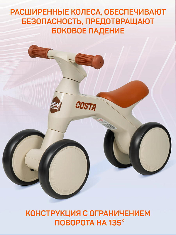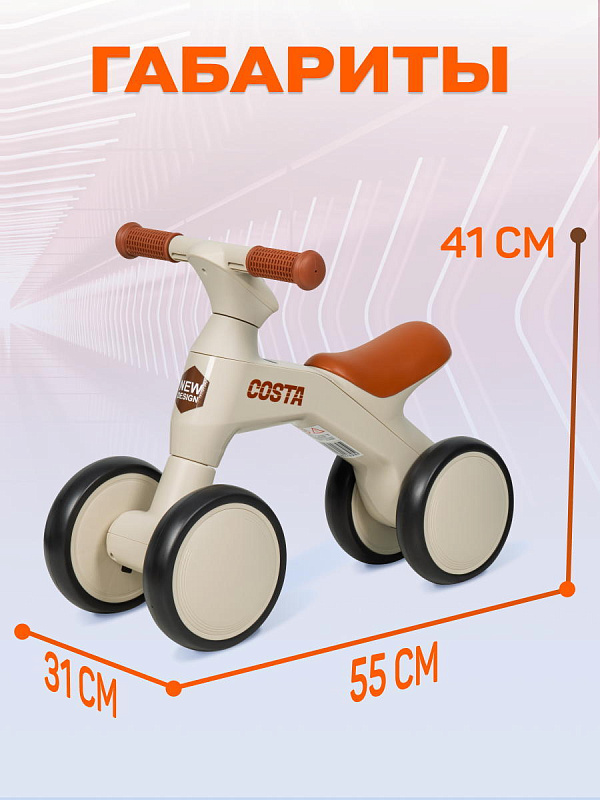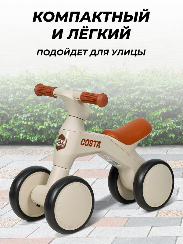 Ультралегкий толокар-беговел для активных ребят. Подходит для детей от 1 года и выдержит нагрузку до 25 кг. Беговел станет спутником малыша на прогулках во дворе и в парке. Колеса из материала EVA мягкие и бесшумные, поэтому осваивать беговел можно даже дома. Эргономичное сиденье и противоскользящие накладки на руле сделают поездки на беговеле удобнее и безопаснее.