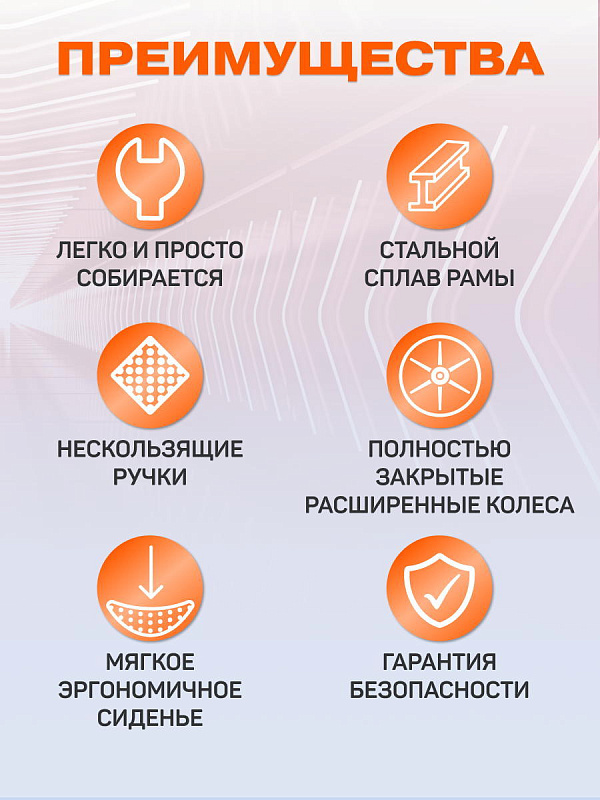 Полностью закрытые широкие колеса уберегут малыша от падения даже при резких поворотах.