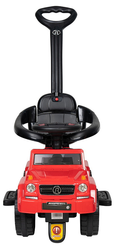 Каталка оснащена музыкальным рулём, работающим от батареек AA (не входят в комплект). Под сиденьем расположен багажник для хранения игрушек. Устойчивая конструкция предотвращает опрокидывание машинки, а специальные упоры спереди и сзади обеспечивают дополнительную безопасность.