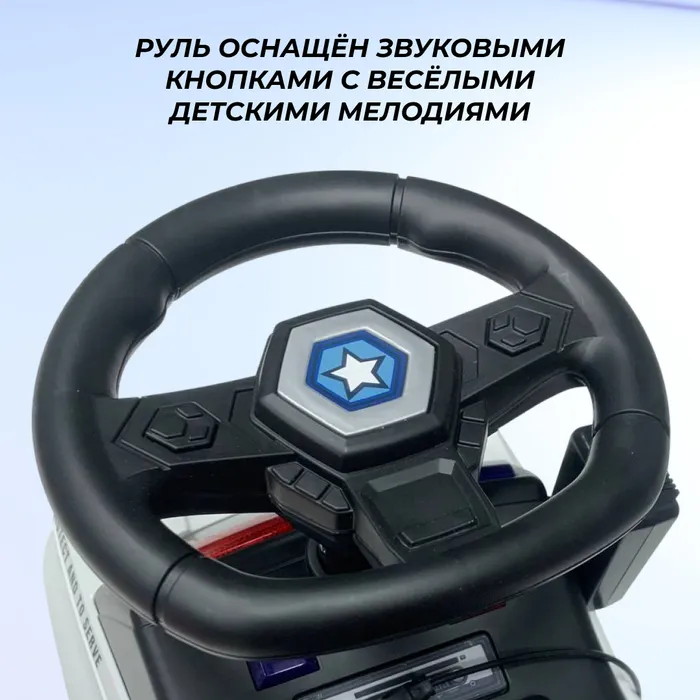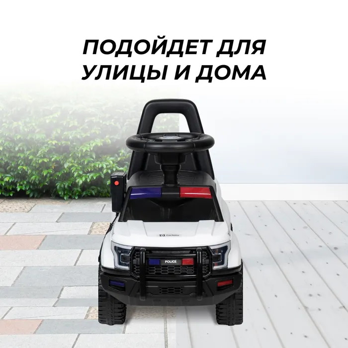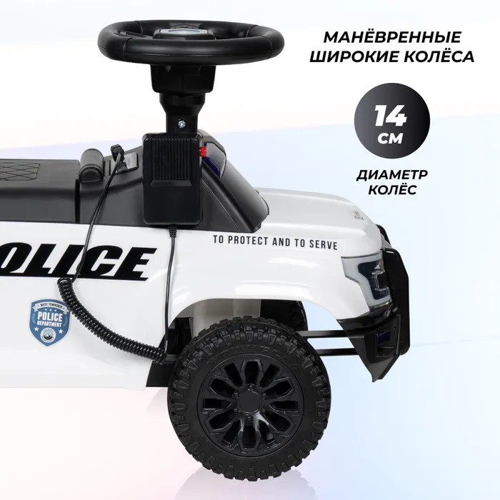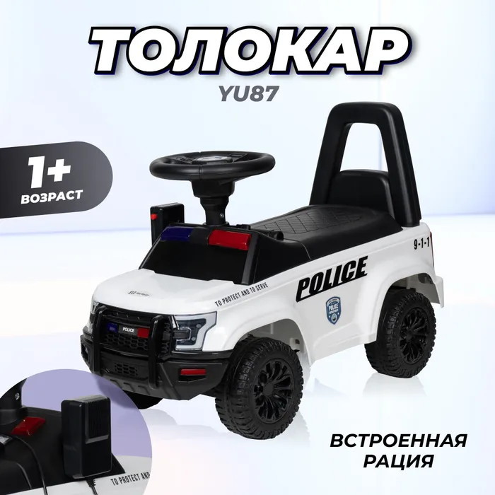 Машинка-толокар модели YU87 поможет вашему ребенку почувствовать себя настоящим полицейским! Встроенная рация работает от 3 батареек АА, которые не входят в комплект. Модель оборудована упором от переворачивания, что делает ее безопасной для детей. Сидение и колеса выполнены из пластика. Сама машинка также выполнена из качественного пластика, что обеспечивает прочность и долговечность. Отличный подарок малышу от 1 до 3-х лет!
