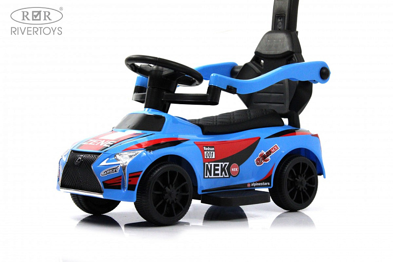 Детский толокар RiverToys F004FF-P с родительской ручкой синий