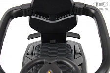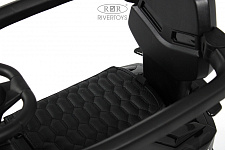 У данной модели отсутствует пульт управления. Наличие подножек позволяет ребенку комфортно сидеть и отдыхать во время передвижения с родителем. Также в конструкции толокара присутствует родительская поворотная ручка, что облегчает родителям управление при необходимости. Колеса выполнены из каучука, что обеспечивает хорошую амортизацию и комфорт при езде. Сиденье толокара выполнено из эко-кожи, что обеспечивает удобство и легкость в уходе за ним. На толокаре также предусмотрено место для хранения, где можно разместить различные вещи.