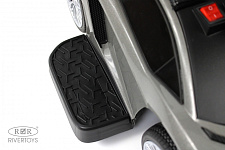 У данной модели отсутствует пульт управления. Наличие подножек позволяет ребенку комфортно сидеть и отдыхать во время передвижения с родителем. Также в конструкции толокара присутствует родительская поворотная ручка, что облегчает родителям управление при необходимости. Колеса выполнены из каучука, что обеспечивает хорошую амортизацию и комфорт при езде. Сиденье толокара выполнено из эко-кожи, что обеспечивает удобство и легкость в уходе за ним. На толокаре также предусмотрено место для хранения, где можно разместить различные вещи.