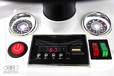 Одна из самых «тюнингованных» моделей толокаров для тех, кто не привык экономить на развлечениях. Сидение выполнено из кожи, а колёса из каучука. Малыш сам может вести машину с помощью педали, но родители всегда могут контролировать езду благодаря пульту управления. К толокару можно подключить mp3-плеер или карту памяти, а можно просто включить радио и наслаждаться музыкой.
