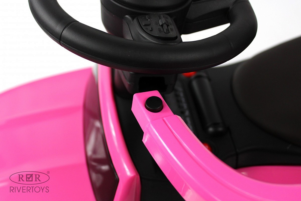 Музыкальный руль со звуком клаксона и заводскими мелодиями, а также световые эффекты передних и задних фар, которые включаются кнопкой, сделают катание ещё более увлекательным.