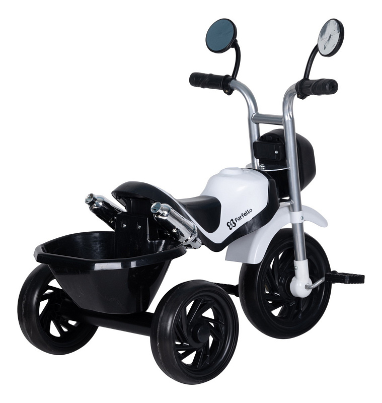 Детский трехколесный велосипед Farfello -крепкая устойчивая модель в современном дизайне предназначена для детей от 2-5 лет. Колёса PU. Свет, звук от кнопки на руле (батарейки АА-2 шт, в комплект не входят). Корзина для любимых игрушек расположена на задней оси.