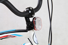 - Для прогулок в вечернее время под рулём установлена светодиодная фара, а сзади – красный фонарь.