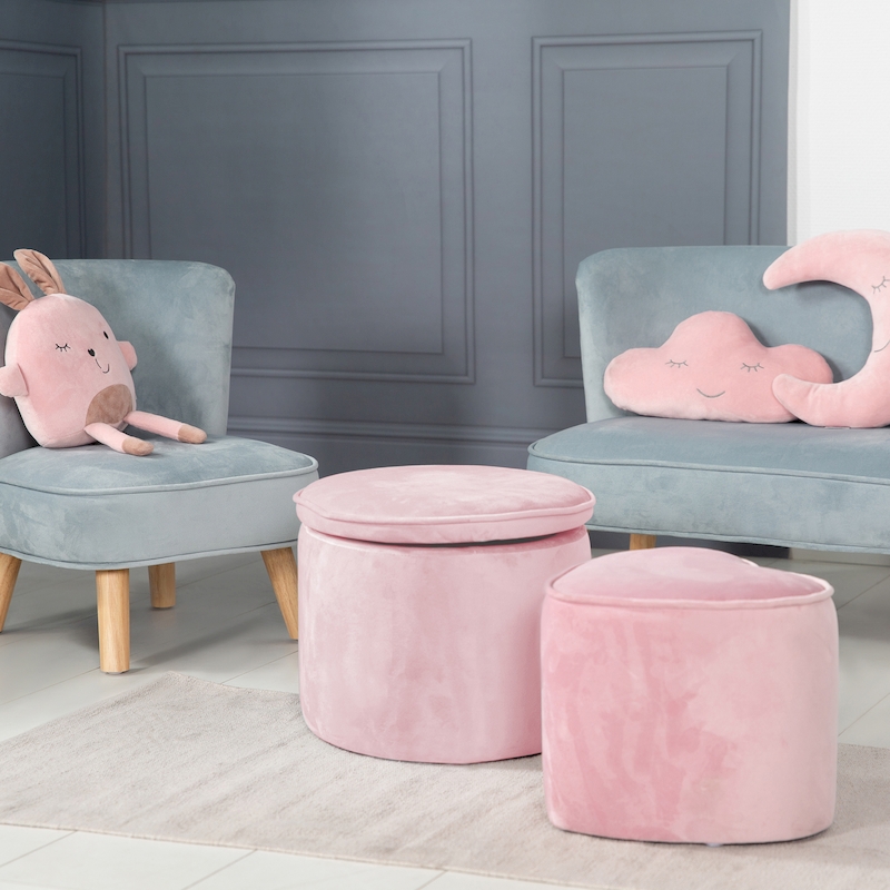 - Доступен в розовом, сером и голубом цветах. К данному пуфику можно докупить удобное кресло и диван из коллекции "Lil Sofa".