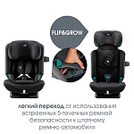 Благодаря функции FLIP&GROW, по мере роста ребенка вы можете перейти от использования встроенного 5-точечного ремня безопасности к использованию 3-точечного ремня безопасности автомобиля. А поскольку нет необходимости снимать какие-либо детали автокресла, перевод кресла из одной группы в другую будет очень прост и удобен.