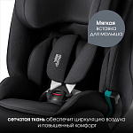 - Трехуровневая защита ребенка за счет конструкции автокресла: боковины кресла защищают тело ребенка от головы до бедер, верхние и нижние направляющие обеспечивают правильное положение ремня безопасности, мягкий подголовник защищает голову и шею ребенка, обеспечивая дополнительный комфорт.