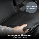 Иногда в машине бывает не очень чисто — может укачать детей или пролиться жидкость. Поэтому мы разработали чехол для автомобильного кресла, который можно легко снять и постирать в стиральной машине.