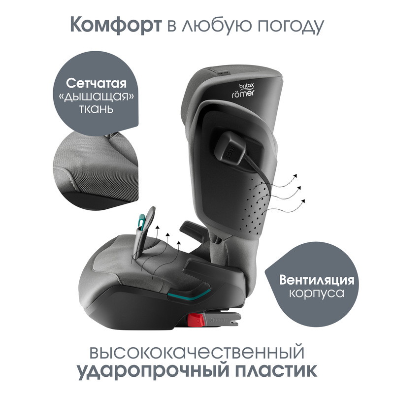 В автокресле KIDFIX PRO предусмотрены вентиляционные отверстия, которые обеспечивают циркуляцию воздуха. Это поможет ребенку чувствовать себя комфортно даже в самые жаркие дни. Более того, в версии STYLE используются дышащие сетчатые ткани. Благодаря улучшенной циркуляции воздуха, ваш ребёнок будет чувствовать себя спокойно и уютно.