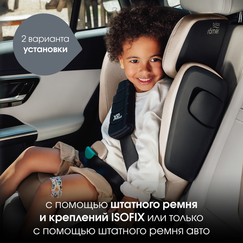 Даже при тщательном планировании и осторожном вождении подготовиться к столкновению невозможно. Компания Britax Roemer разработала специальную накладку XP-Pad из амортизирующей пены для защиты области шеи вашего ребенка при лобовом столкновении. Она предотвращает удар подбородка ребенка об грудь, поглощая до 30%* энергии, а также ограничивает резкое движение головы вперед, что обеспечивает защиту шеи вашего ребенка. В то же время она выполняет роль дополнительной накладки на ремень безопасности.