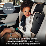 Обеспечьте надёжную защиту детям старшего возраста. Высокая спинка корпуса поддерживает ребёнка от головы до бёдер, а направляющие ремня безопасности помогают правильно его расположить. Мягкий подголовник гарантирует безопасность и комфорт для головы и шеи вашего ребёнка, поэтому вы можете быть спокойны во время любых поездок.