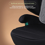 Автокресло выполнено в элегантном черном цвете, гармонично впишется в интерьер любого автомобиля.