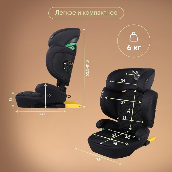 Детское автокресло Kidzi ITIRO i-SIZE предназначено для детей старшего возраста (примерно от 3,5 до 12 лет) ростом 100-150 см.