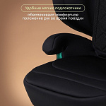 Автокресло выполнено в элегантном черном цвете, гармонично впишется в интерьер любого автомобиля.