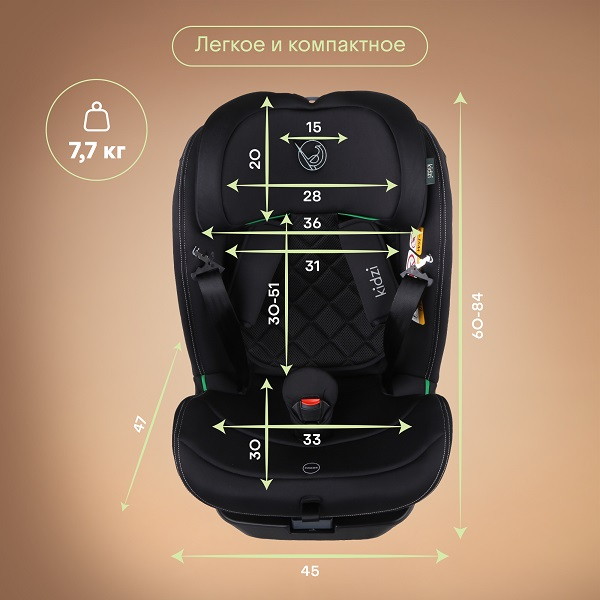 - Для детей ростом 40-105 см: Кресло устанавливается против хода движения, что обеспечивает максимальную безопасность для младенцев и маленьких детей.