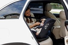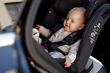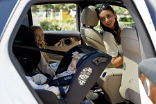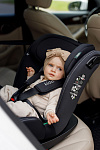 - Кресло свободно вращается на 360°, что облегчает переключение между положениями против и по ходу движения, а также обеспечивает удобство при посадке и высадке ребенка.