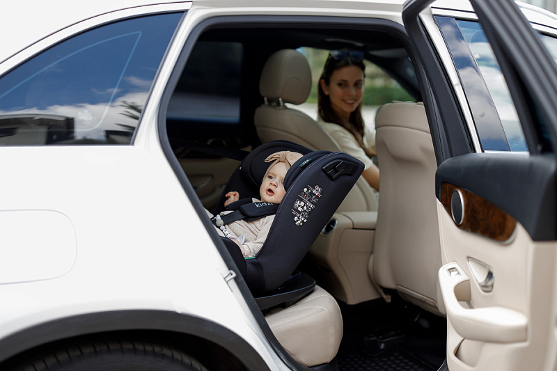 - Кресло свободно вращается на 360°, что облегчает переключение между положениями против и по ходу движения, а также обеспечивает удобство при посадке и высадке ребенка.