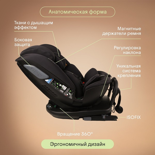 Дизайн и эргономика: Кресло разработано с учетом эргономических требований, чтобы обеспечить правильное положение ребенка и поддержку его позвоночника. Современный дизайн делает его стильным и подходящим для любого автомобиля.