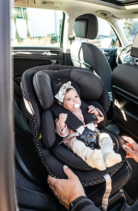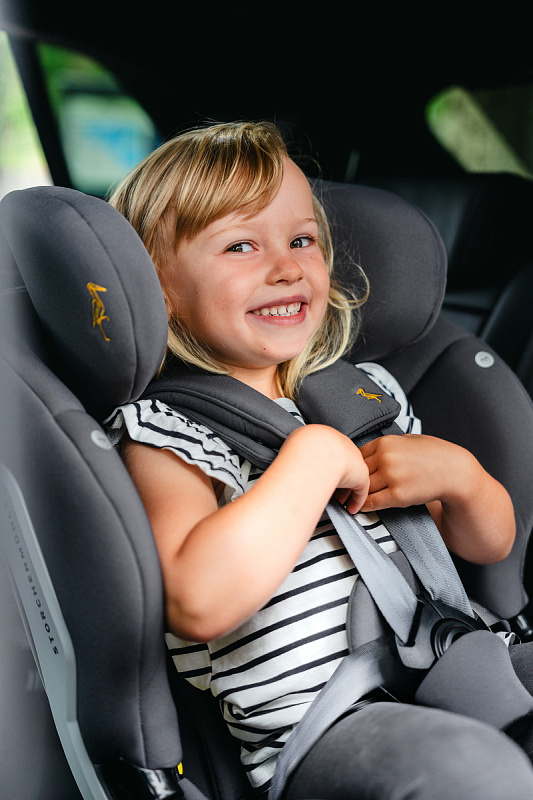 Продумано до мелочей. Встроенные магнитные держатели гарантируют, что 5-точечные ремни больше не будут мешать при посадке в автокресло. Стильная сумка для хранения и транспортировки в комплекте.