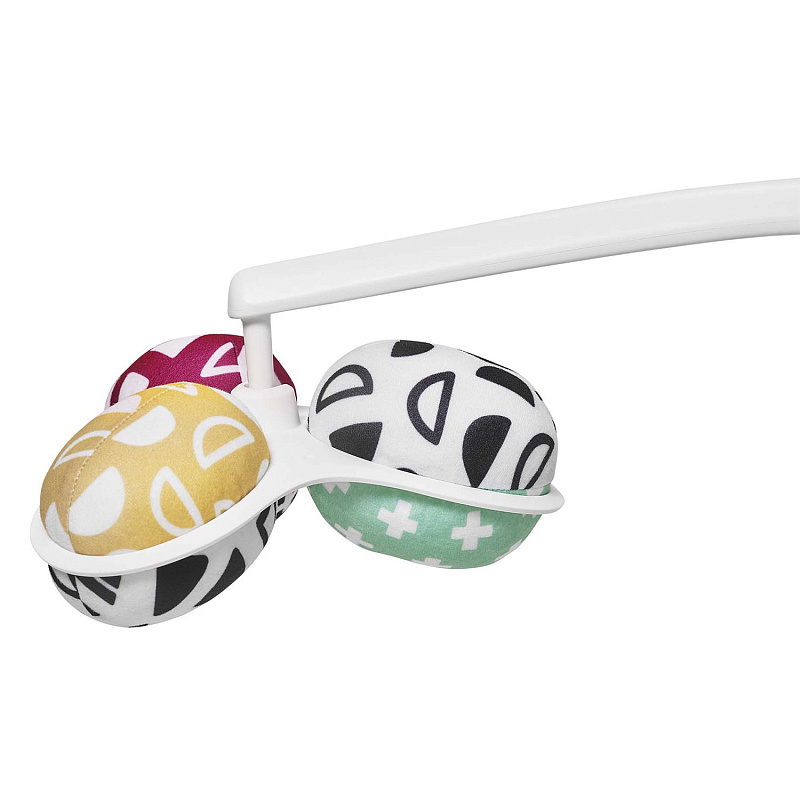 • Мобиль с интерактивными двусторонними игрушками - погремушкой, зеркалом и шуршащими элементами