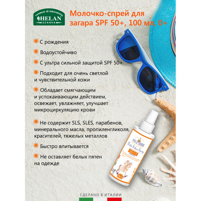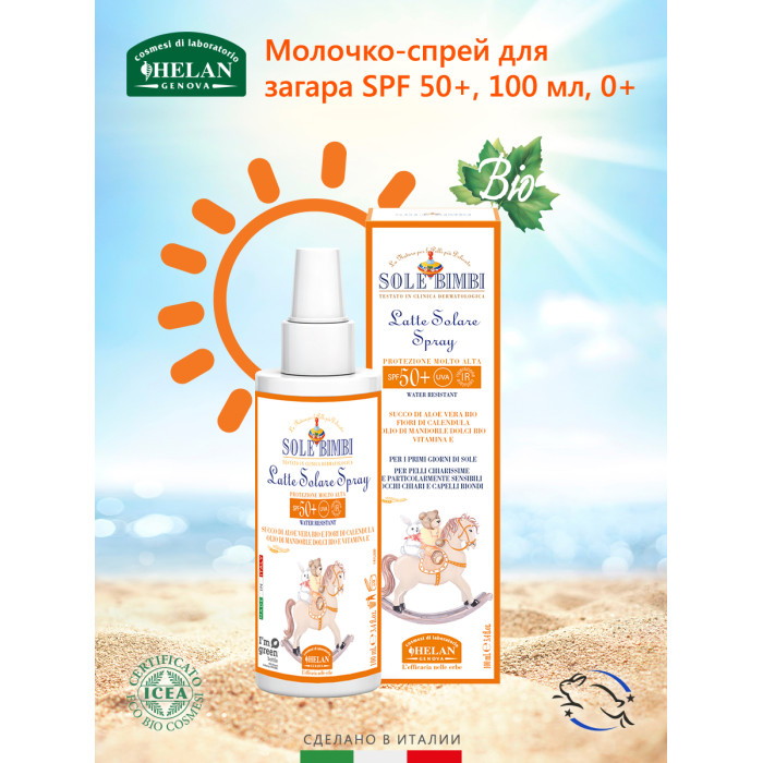 Детское молочко-спрей Helan Sole Bimbi молочко для защиты от солнца c очень высоким фактором защиты, 100млНет оценокХарактеристики