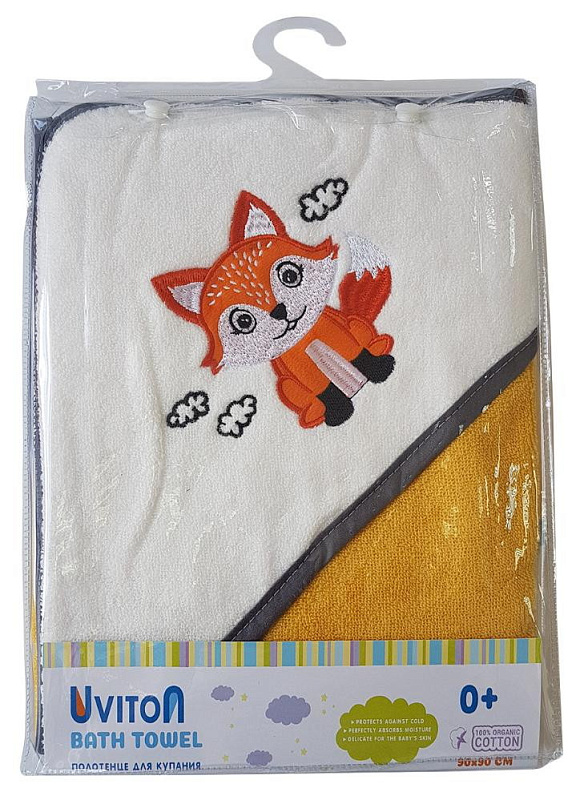 Детское полотенце для купания Uviton Little Fox 90х90 см желтое