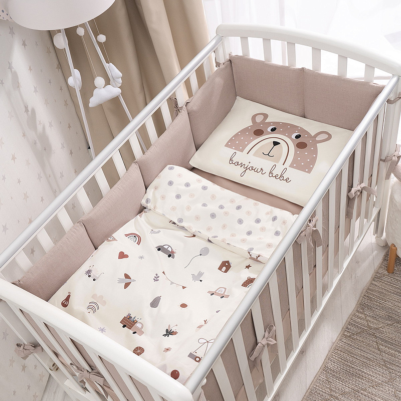 Благодаря оригинальному дизайну и нежному натуральному твил-сатину модель Bonjour Bebe так эффектно смотрится и очень приятная на ощупь. Качество ткани и специальное нанесение узора обеспечит комплекту новый вид даже после многократных стирок. Сатин долго остается мягким и гладким.