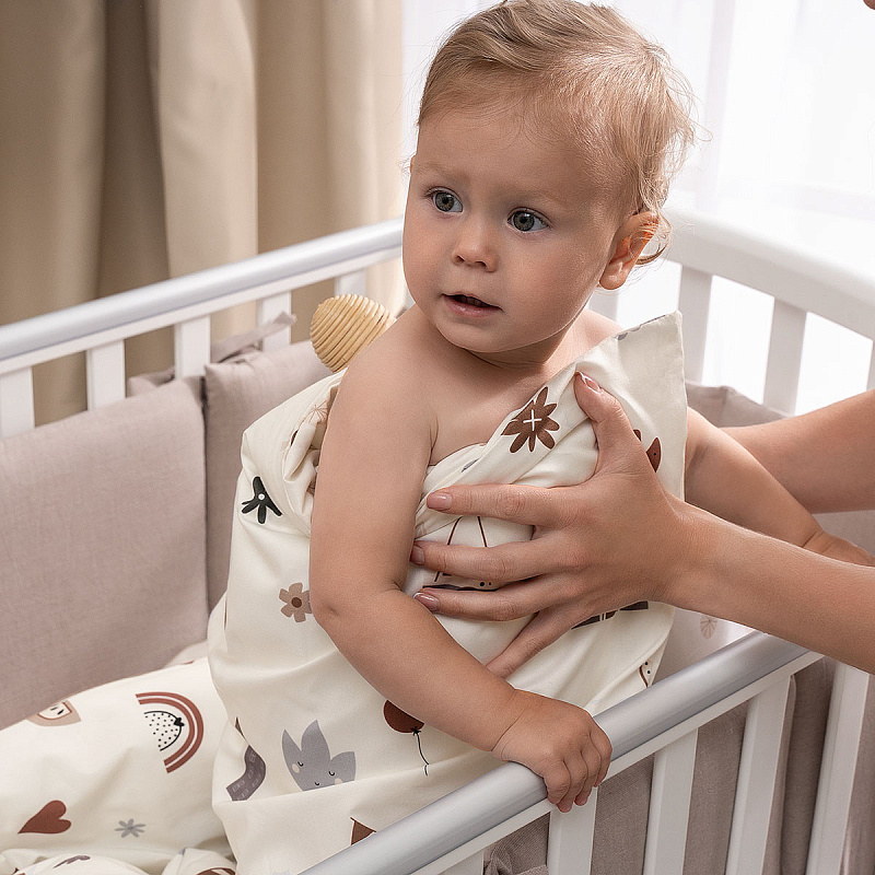 Мы постарались сделать комплект не только красивым, но и практичным. Пододеяльник на молнии легче надевать, при этом застежка сделана так, чтобы ребенок не смог случайно задеть ее ножкой или ручкой. Качество пошива гарантирует долгий срок службы комплекта, а подарочная упаковка придется к месту, если вы решите поделиться этой радостью с близкими.